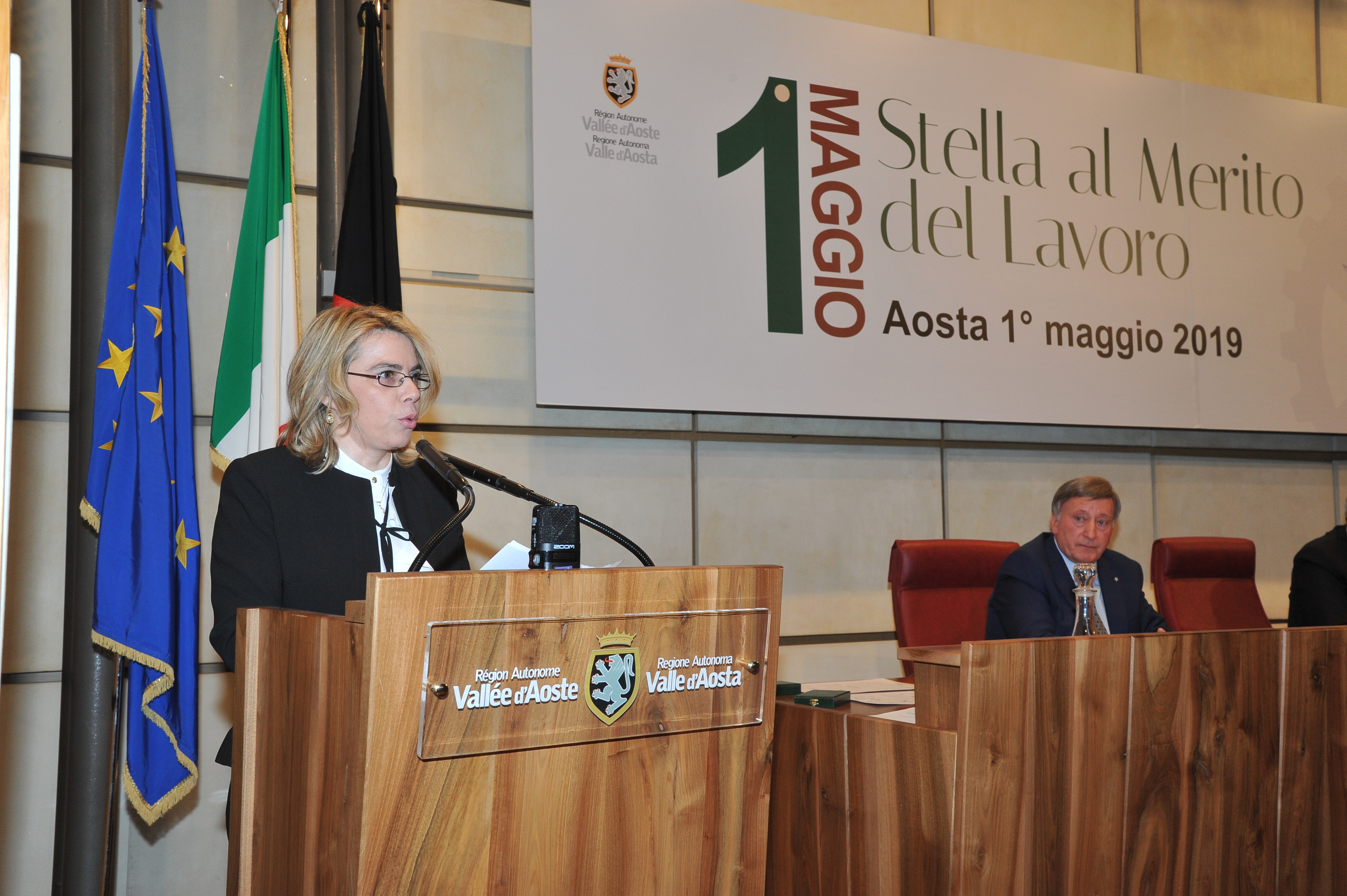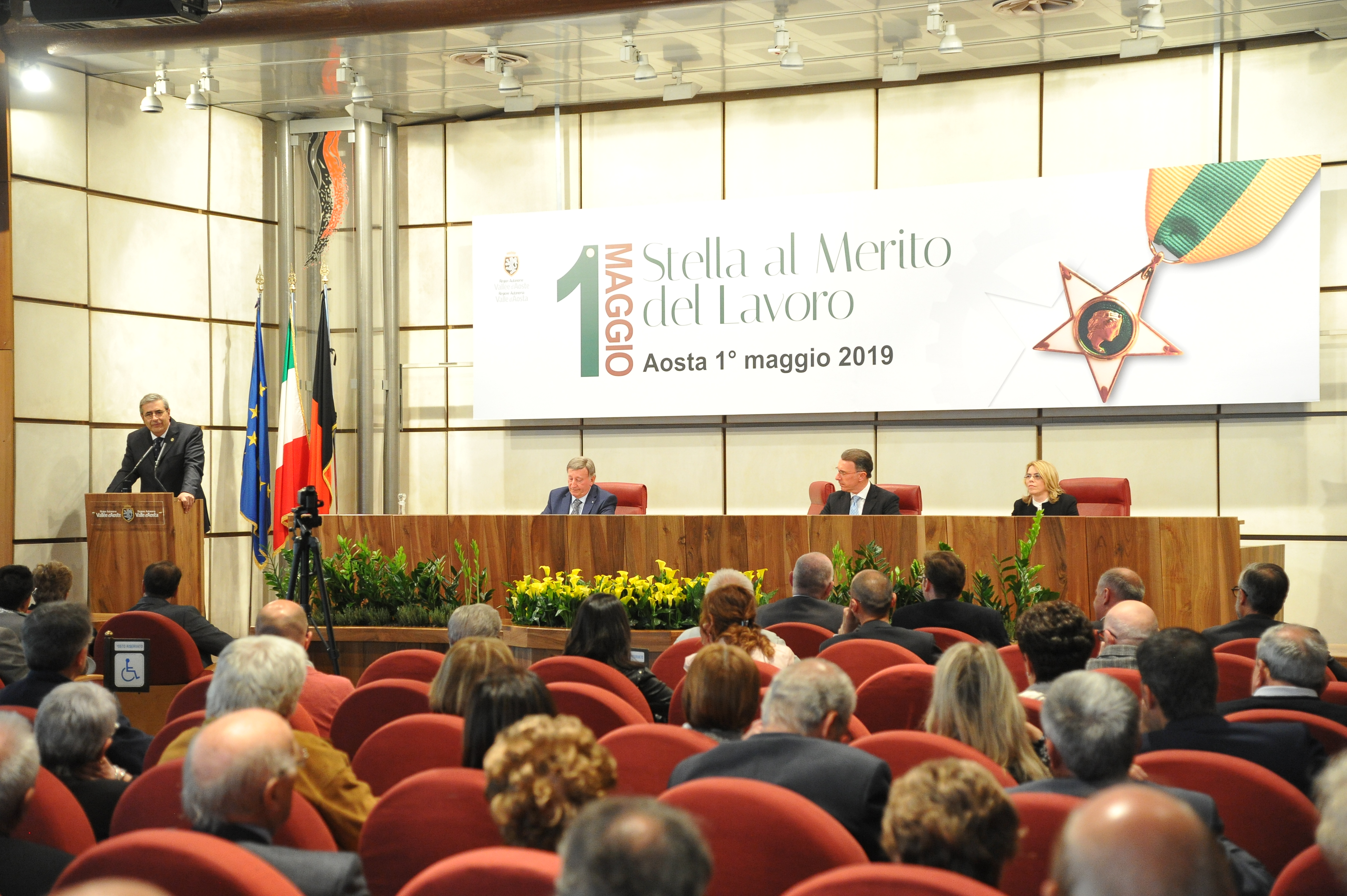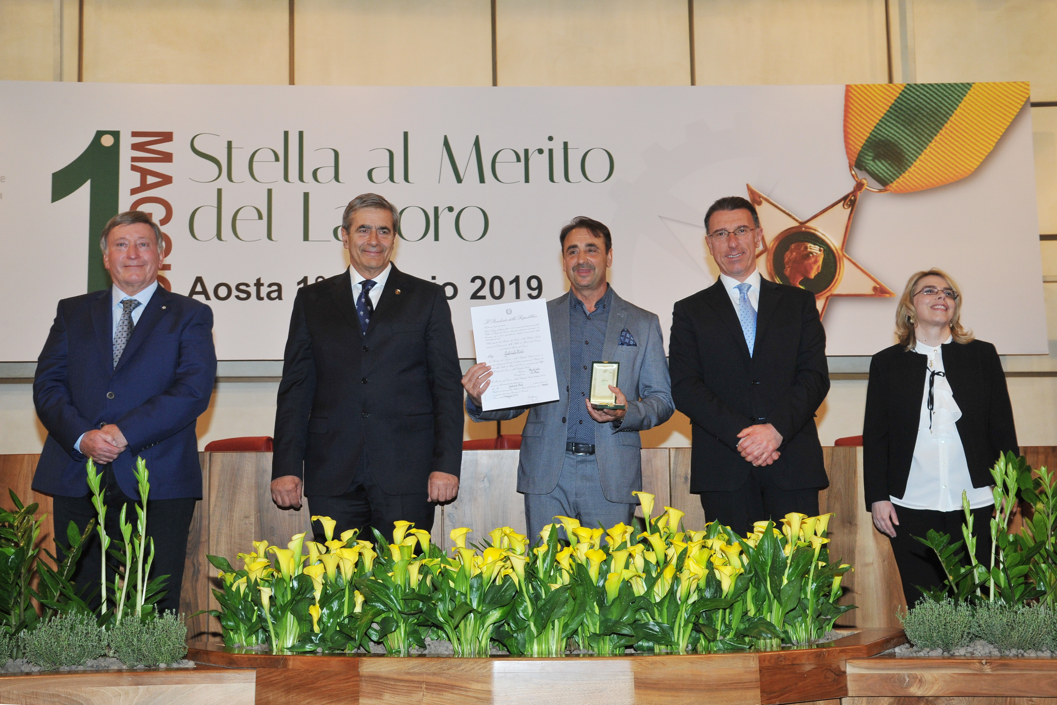 Cérémonie de remise de la Stella al Merito del Lavoro aux nouveaux Maîtres du travail valdôtains :