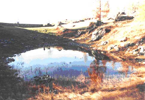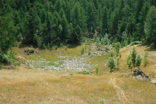 Nell’immagine superiore ricostruzione del probabile andamento della falda acquifera, all’interno del versante di Emarèse. L’innalzamento porta all’occasionale riempimento del Lago di Lot.