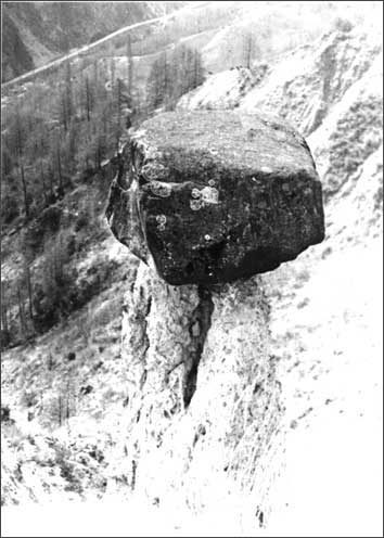 | Questo materiale compattato dall’elevato carico esercitato dalla massa glaciale affiora in corrispondenza dell’incisione del T. Gaboë, dove dopo il ritiro della massa glaciale ha agito l’erosione delle acque piovane e del ruscellamento superficiale.Il protrarsi per millenni dell’erosione su depositi molto eterogenei, | |