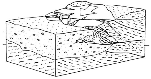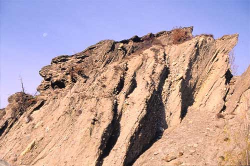 A ulteriore riprova della deformazione gravitativa avvenuta, si può osservare la piega pluridecametrica presso la cava di La Plantaz. Gli strati della piega presentano una inclinazione massima di 70°, alquanto insolita per corpi sedimentari di questo tipo, la cui giacitura dovrebbe essere suborizzontale o poco inclinata. La forte inclinazione che caratterizza questi sedimenti potrebbe, almeno in parte, essere riconducibile all’andamento deformativo in atto.