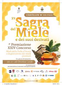L’ultimo weekend di ottobre (26-27-28 ottobre 2018) Châtillon si trasforma nella capitale valdostana del miele, ospitando il 24° concorso dedicato a questo prodotto naturale e ai suoi derivati. Domenica 28 ottobre, dalle 10.00 alle 18.00, la via centrale del borgo, ospita bancarelle dei produttori locali di Miel du Val d’Aoste, offrendo l’occasione agli amanti di questo goloso alimento, di degustare le migliori specialità e assaggiare squisiti dolci a tema. La manifestazione, organizzata dall’Amministrazione comunale di Châtillon, in collaborazione con l’Assessorato Agricoltura e Ambiente della Regione autonoma Valle d’Aosta, e con il sostegno dell’Associazione consorzio Apistico della Valle d’Aosta, attira ogni anno molti visitatori. Nel corso della manifestazione infatti si svolge anche la premiazione del concorso regionale, che avverà domenica alla ore 10.30 presso la Sala Hotel Londres, quando i migliori produttori di questi nettari zuccherini riceveranno il riconoscimento inerente la categoria per la quale hanno concorso. Nel programma della manifestazione anche l’interessante iniziativa Châteaux Miel: sabato 27 ottobre, presso il Castello Gamba, cultura ed enogastronomia, si uniscono in un’esperienza unica e suggestiva, proponendo visite guidate alle sale del castello, inserite in un percorso didattico e degustativo dei mieli del territorio con la realizzazione di cocktail, finger food e vini abbinati.