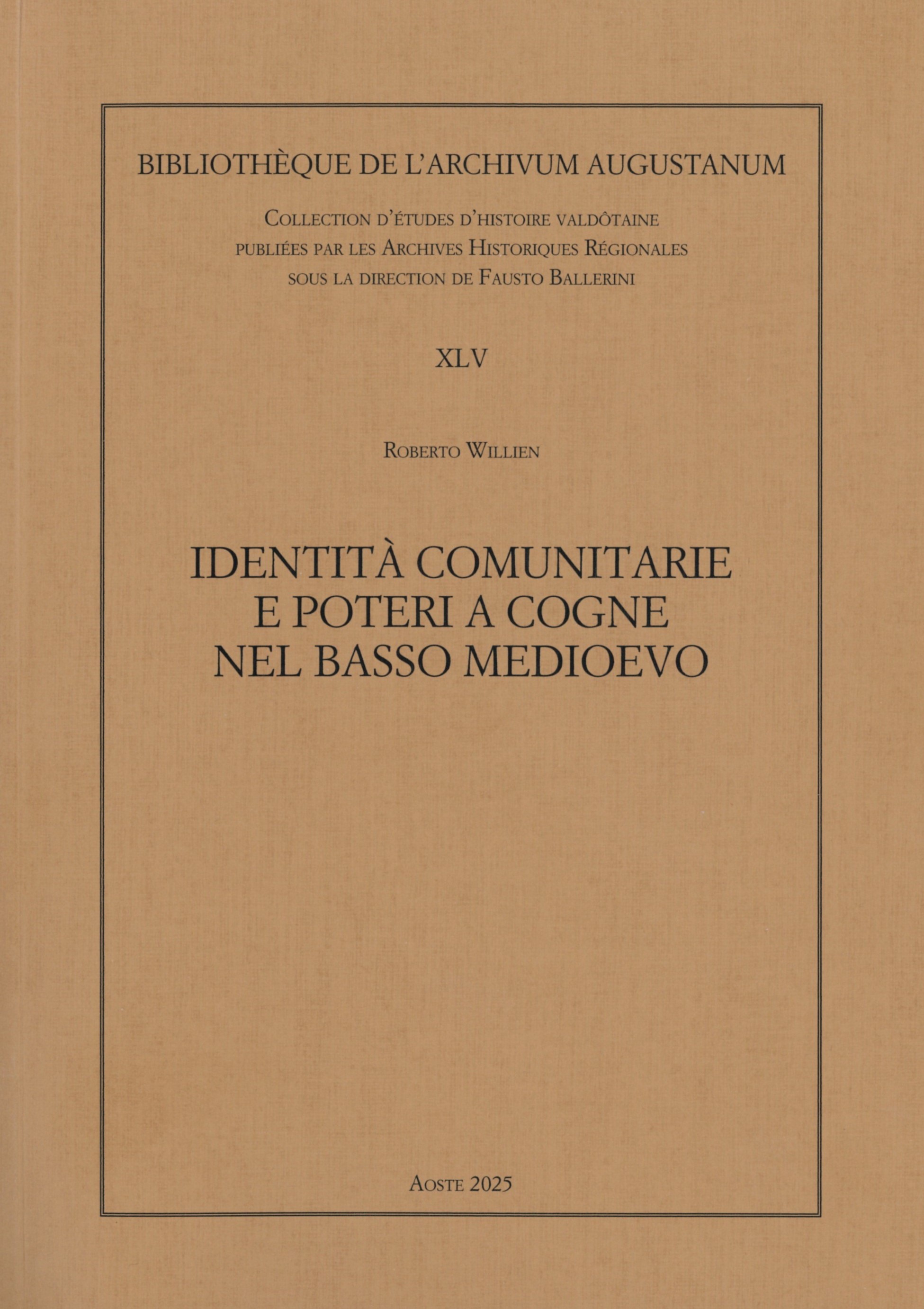 Roberto Willien, Identità comunitarie e poteri a Cogne nel basso medioevo, Aoste 2025 (Bibliothèque de l'Archivum Augustanum, XLV).