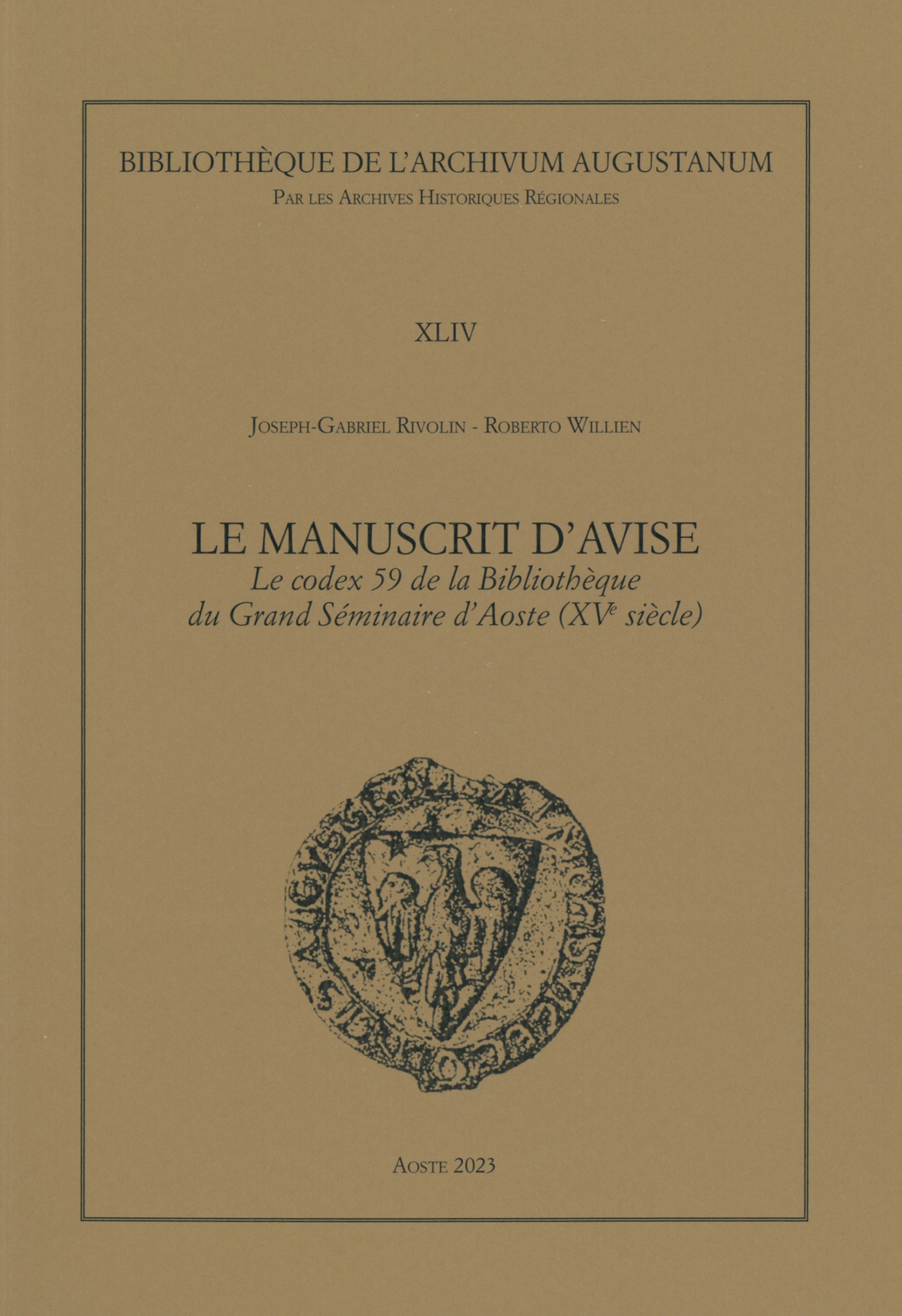 Joseph-Gabriel Rivolin - Roberto Willien, Le manuscrit d'Avise. Le codex 59 de la Bibliothèque du Grand Séminaire d'Aoste (XVe siècle), Aoste 2023