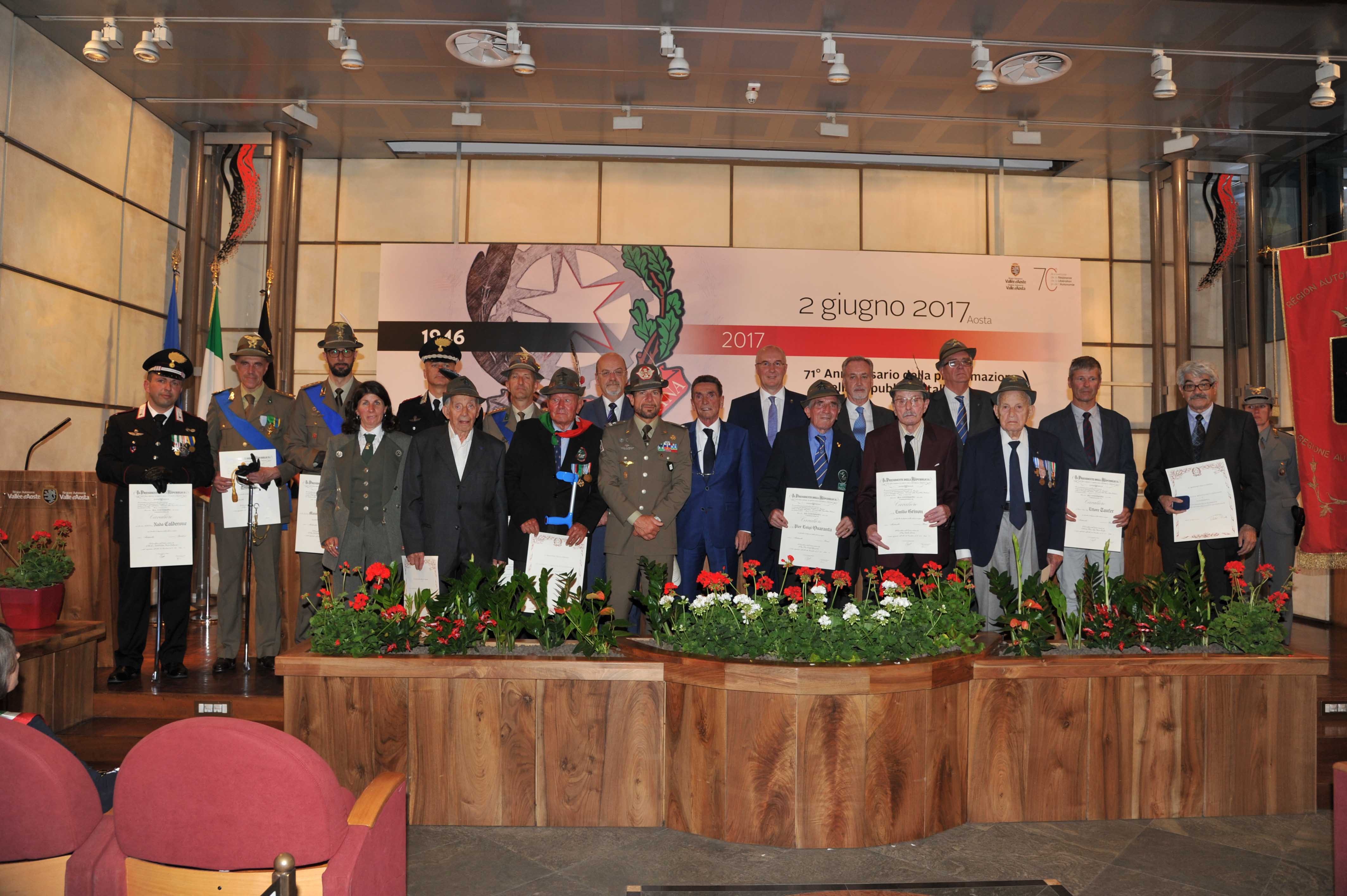 Cerimonia di consegna delle Medaglie della Liberazione a Argentino Fea, Carlo Guaramonti, Bruno Nigra e Ivan Pesaola.