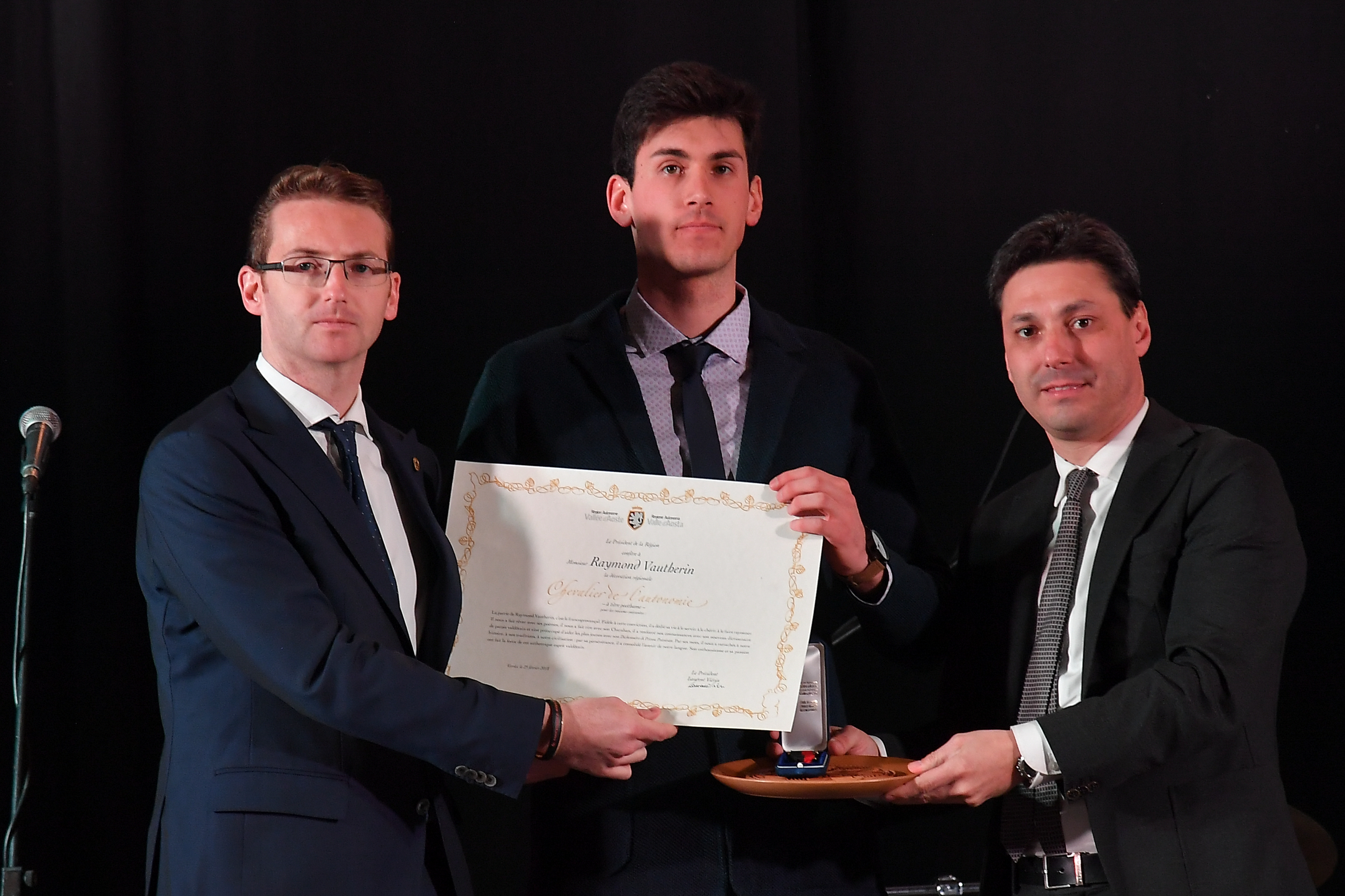 La patrie de Raymond Vautherin, c'est le francoprovençal. Fidèle à cette conviction, il a dédié sa vie à le servir, à le chérir, à le faire rayonner. Il nous a fait rêver avec ses poèmes, il nous a fait rire avec son Charaban, il a renforcé nos connaissances avec son nouveau dictionnaire de patois valdôtain et s’est préoccupé d’aider les plus jeunes avec son Dichonnéro di Petsou Patoésan. Par ses mots, il nous a rattachés à notre histoire, à nos traditions, à notre civilisation ; par sa persévérance, il a consolidé l'avenir de notre langue. Son enthousiasme et sa passion ont fait la force de cet authentique esprit valdôtain.