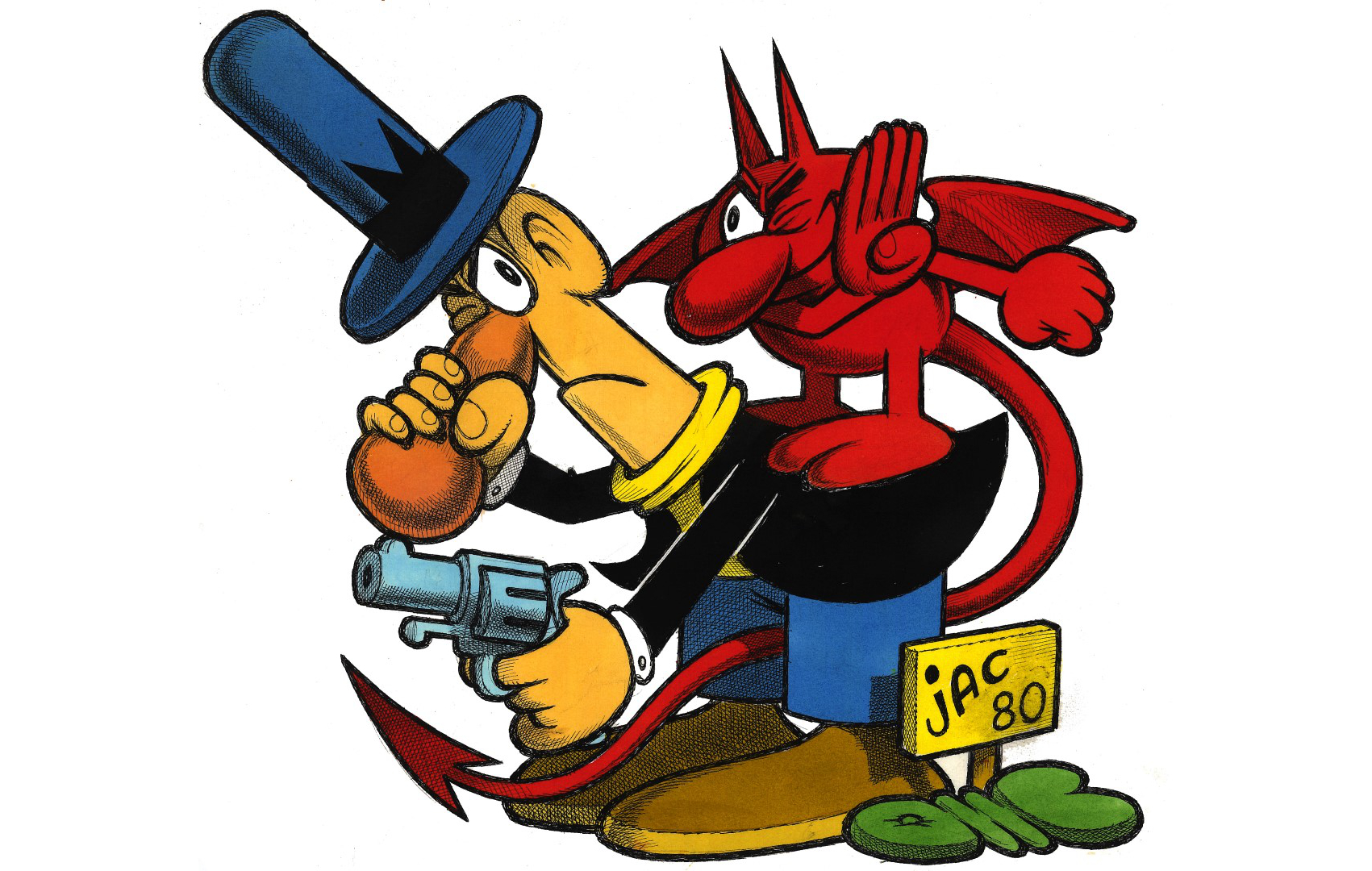 Schizzi, vignette, tavole di fumetti e illustrazioni compongono l’articolato percorso espositivo della mostra con alcune vere “chicche” che si potranno vedere in originale per la prima volta. Tra queste alcune tavole realizzate per oggetti promozionali, 60 disegni di figurine realizzate nel 1954 per l’albo de Il Vittorioso“Genti d’ogni paese” in cui l’estro di Jacovitti spazia per i 5 continenti raffigurando a modo suo ogni popolo. Saranno esposte inoltre alcune tra le prime tavole disegnate e tra queste spiccano per bellezza i disegni di “Pippo e la guerra”, “Mandrago”, “L’Onorevole Tarzan”, “Pippo in montagna”, “Giacinto corsaro dipinto” e “Oreste il guastafeste” recentemente tornate in possesso della figlia. Si passerà poi dalle tavole del mitico “Diario Vitt” realizzato dal 1949 al 1980, vera icona degli studenti di quegli anni, ai diari realizzati da Jac negli anni Ottanta.