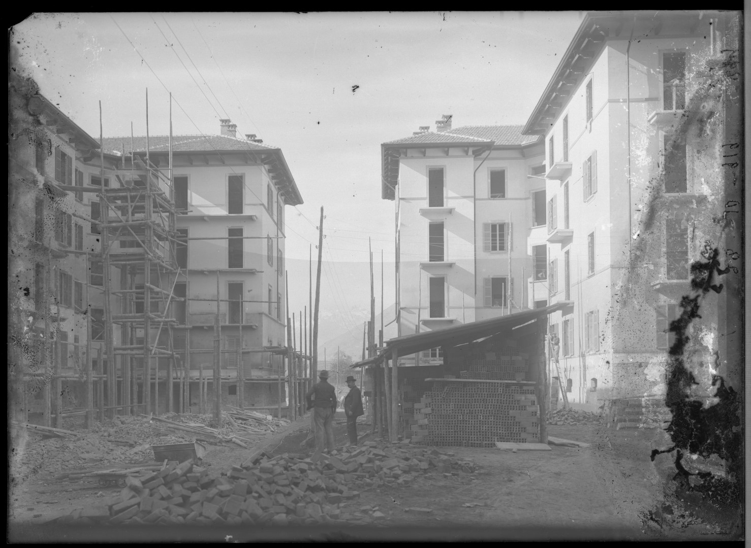 Il primo conflitto mondiale, facendo crescere a dismisura la domanda dell’industria bellica, si rivelò uno straordinario volano per la siderurgia italiana. L’Ansaldo di Genova, guidato dai fratelli Perrone, a partire dal 1917 creò ad Aosta uno stabilimento per la produzione di ghisa di alta qualità, nel quale il minerale di Cogne doveva essere fuso in moderni altoforni ad arco, a loro volta alimentati da nuovi impianti idroelettrici. In parallelo alla costruzione dello stabilimento prese il via la realizzazione di un nuovo “quartiere operaio” nella piana a ovest della città, agglomerato urbano inizialmente chiamato “quartiere Ansaldo” e in seguito, spontaneamente, “quartiere Cogne”. La necessità di nuovi e razionali spazi abitativi fu ovviamente legata alla dirompente spinta demografica prodotta dalla nuova realtà industriale. Ma essa discese anche dal desiderio dei fratelli Perrone di riunire in un unico spazio tutti i protagonisti della fabbrica, favorendo sì la nascita di una coscienza di classe tra i salariati e la loro identificazione con l’azienda, ma riproducendo pure d’altro canto, attraverso la distribuzione degli spazi e nella diversificazione delle abitazioni, la gerarchia e le differenze di funzioni presenti all’interno dello stabilimento. A partire dagli anni Venti si assistette all’arrivo di migliaia di operai immigrati che andarono ad occupare ogni spazio abitativo disponibile all’interno delle mura dell’antica città. Basti pensare che dai 7008 abitanti del 1911 si passò a 13.962 nel 1931, per raggiungere poi i 24.215 nel 1951.