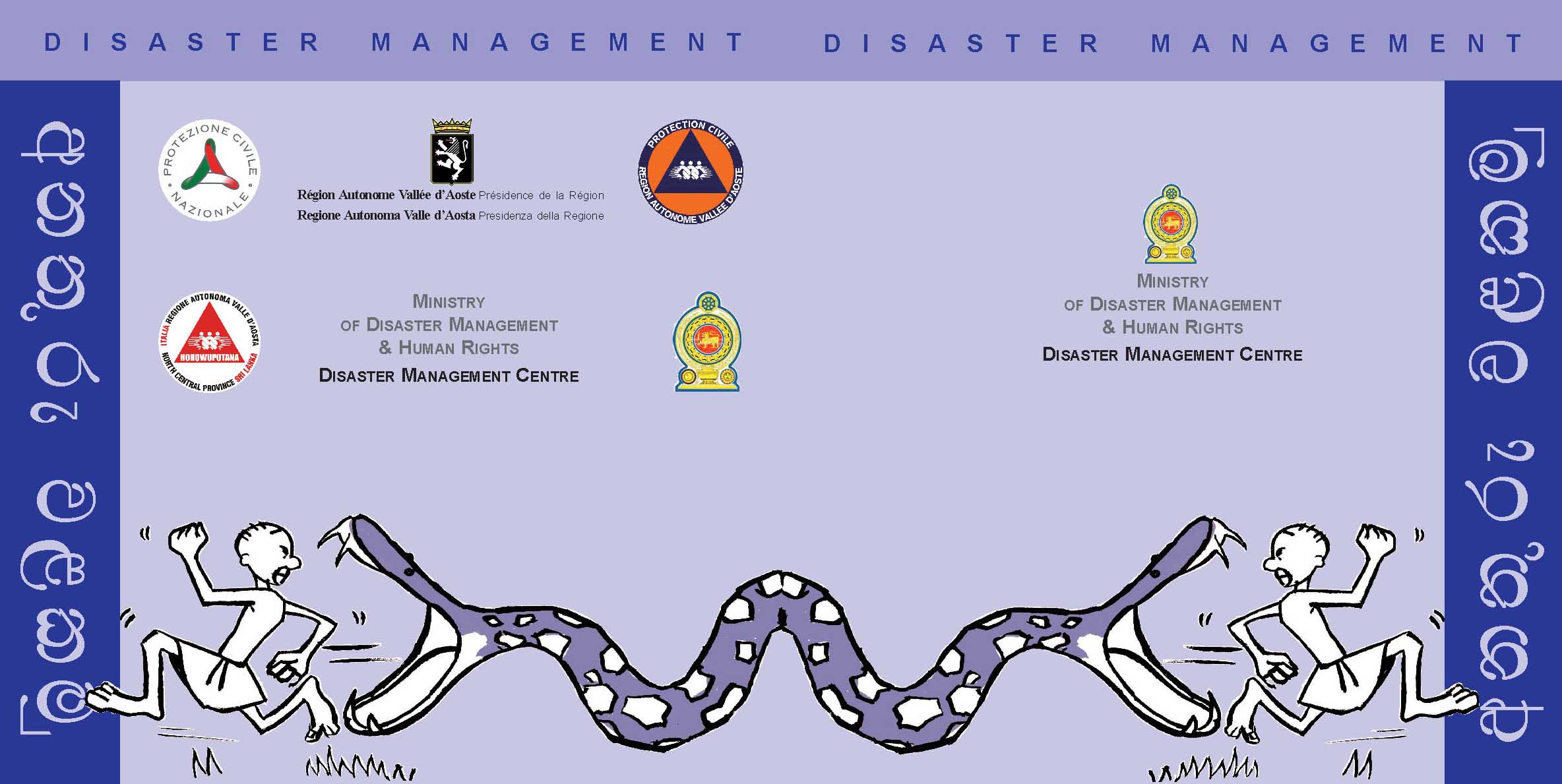 COUVERTURE DE L'OPUSCULE « DISASTER MANAGEMENT » EN CINGALAIS, EN TAMOUL ET EN ANGLAIS