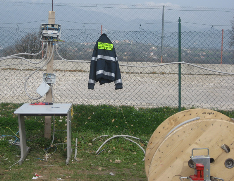 con l’aiuto dell’elettricista del paese partono i lavori per la realizzazione dell’impianto elettrico del campo;