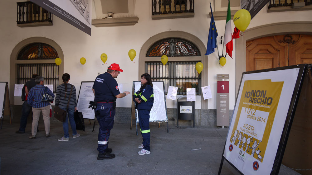 Sabato 11 e domenica 12 ottobre, in contemporanea con altre piazze in tutta Italia, i volontari della Protezione Civile della Valle d’Aosta partecipano alla campagna con un punto informativo “Io non rischio” allestito ad Aosta in piazza Émile Chanoux per incontrare la cittadinanza, distribuire materiale informativo sul terremoto e rispondere alle domande sulle possibili misure per ridurre il rischio.