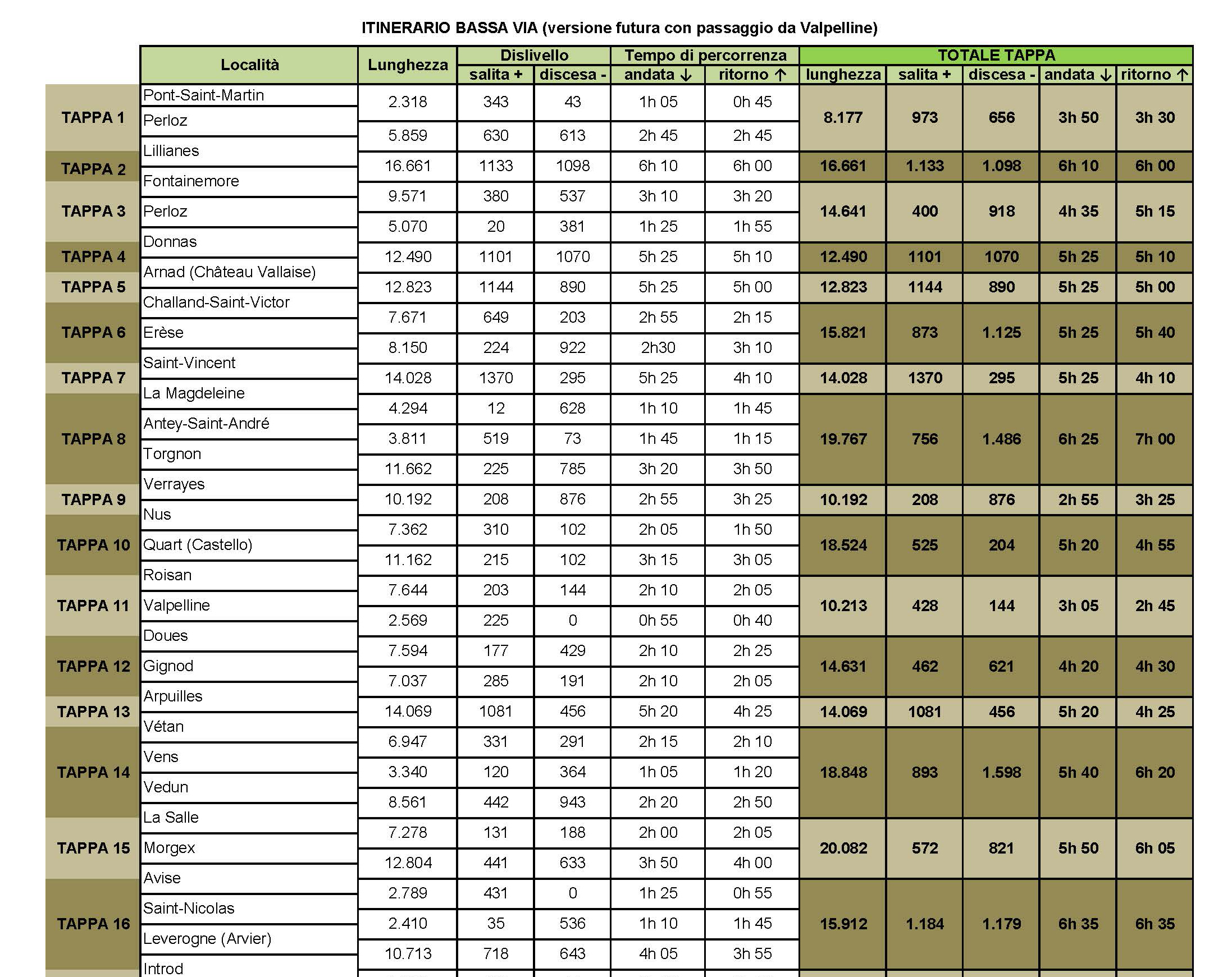 La realizzazione dell’itinerario rientra nel progetto strategico Bassa Via della Valle d’Aosta cofinanziato dall’Unione Europea, dallo Stato italiano e dalla Regione autonoma Valle d’Aosta nell’ambito del Programma Investimenti per la crescita e l’occupazione 2014/20 FESR. Il progetto ha per obiettivo la creazione di un prodotto turistico nuovo, finalizzato a uno sviluppo sostenibile delle località di media e bassa quota, in una logica di delocalizzazione e di destagionalizzazione dei flussi.