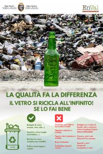 A seguito di nuovi servizi attivati dalla società ENVAL, gestore dell’impianto di Brissogne per il Recupero e Smaltimento di rifiuti urbani della Regione Autonoma Valle d'Aosta, a partire dal 1° ottobre 2025, sarà possibile sia per le utenze domestiche sia per le utenze non domestiche conferire vetri piani nei Centri di Raccolta del territorio regionale resisi disponibili.